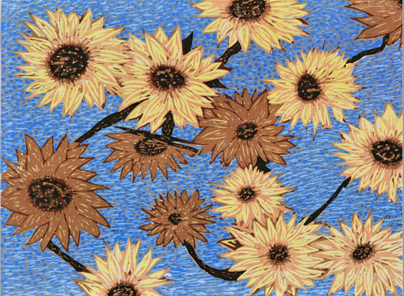 After going to the "Immersive Van Gogh" show and seeing his colorful and imaginative work moving across the walls, floors and ceilings of the exhibit hall, I began to ponder abstraction as a concept of art. That turned me loose to try my own hand at creating some colorful blossoms through more spontaneous carving. I began my artwork working with representational designs, each carefully engineered. I'm learning more and more to let that go and to follow the impulses of my heart and hand...