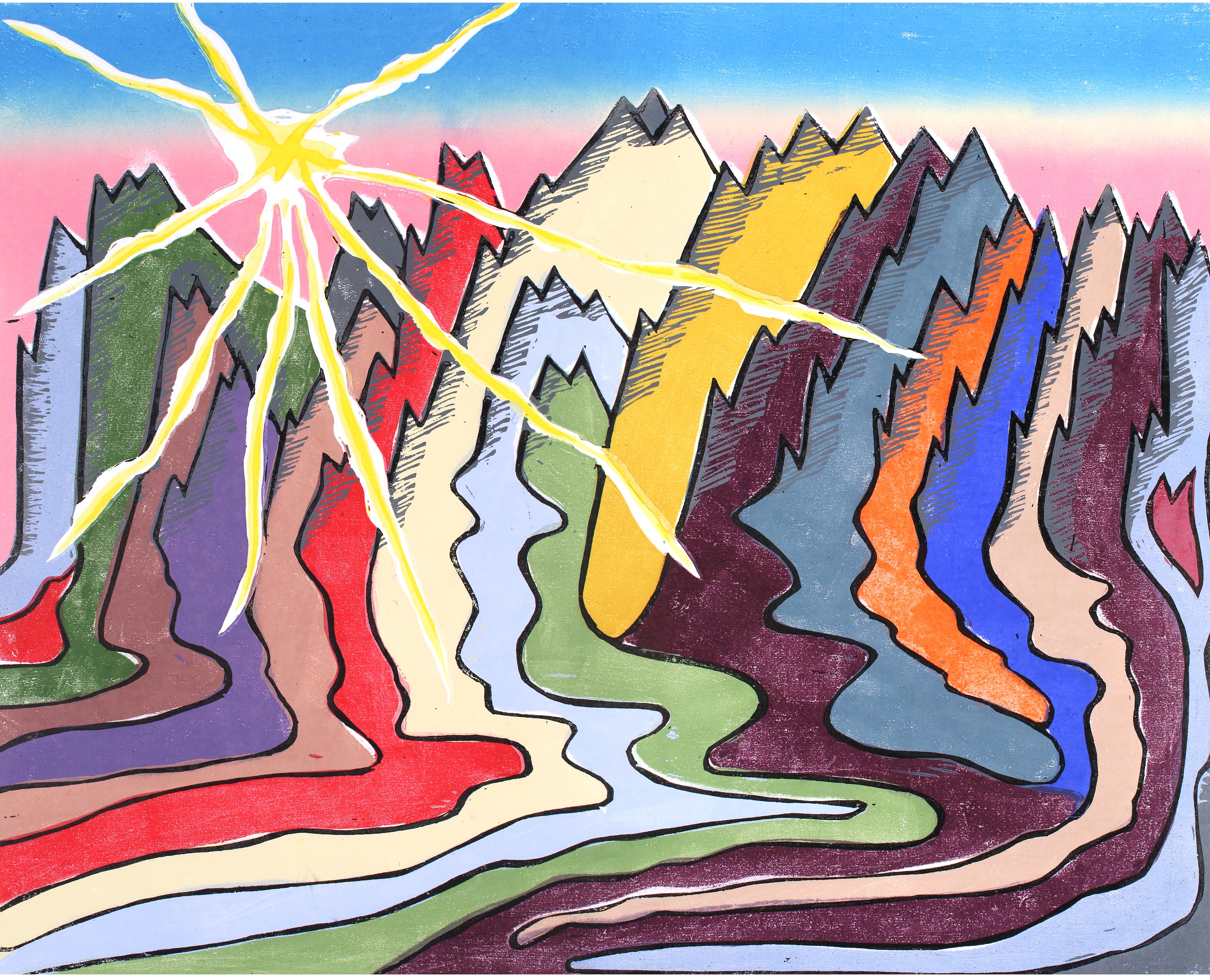 The troubles of our time have sent us down some rough roads and raised obstacles which often appear as insurmountable mountains, but the divine and human energies around and within us are able to smooth those roads and level those mountains for a bright and beautiful new day! It's a hopeful transformation that unfolds with the printing of every new color or line, as with every healthy step, fresh breeze and caring conversation!