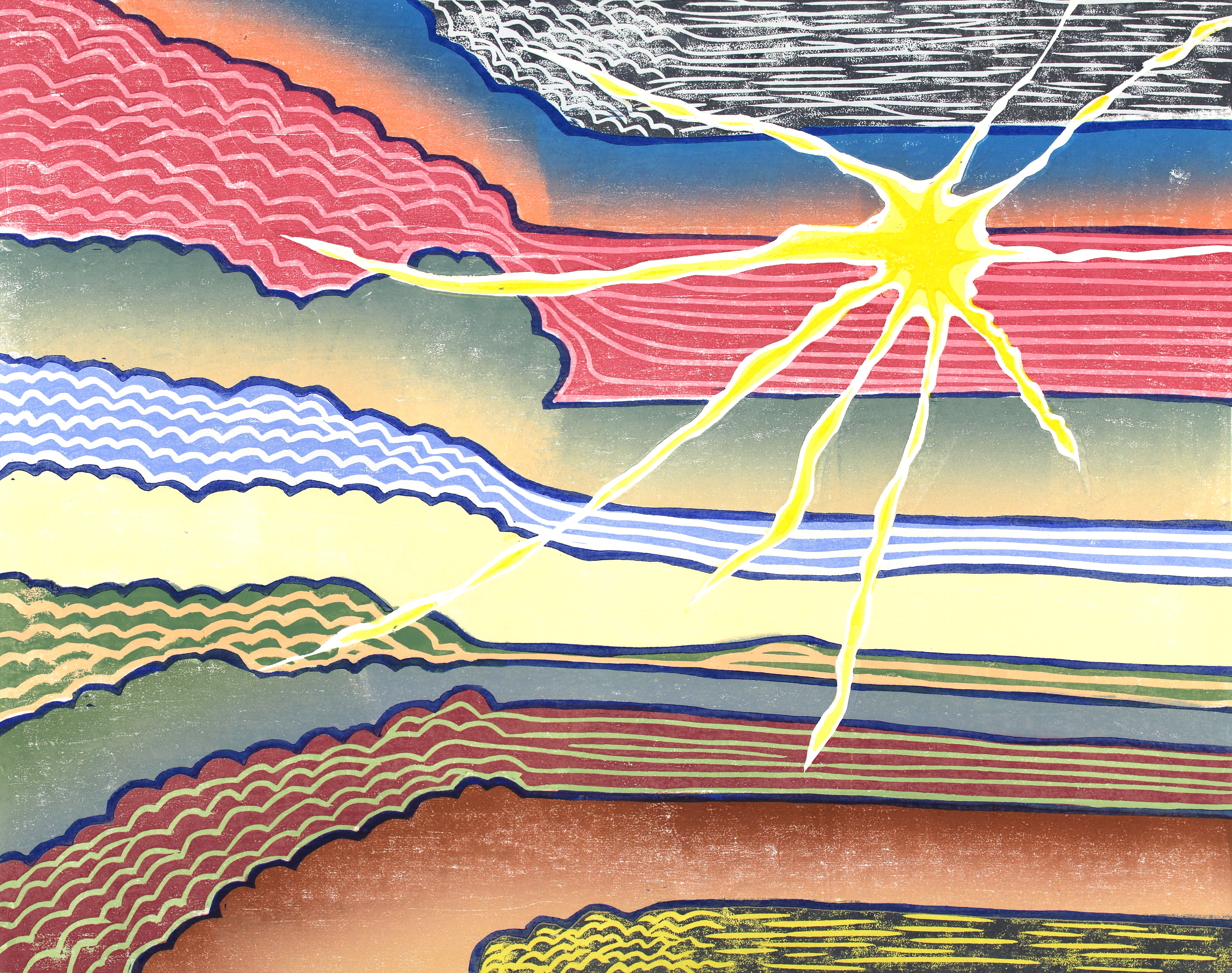 Though available separately, these two hand-printed reduction woodcuts go hand in hand. Each one is 15 by 19 inches, using two Shina Plywood blocks and 24 and 25 Akua Intaglio colors to produce 8 limited-edition originals on Shin Torinoko White paper.